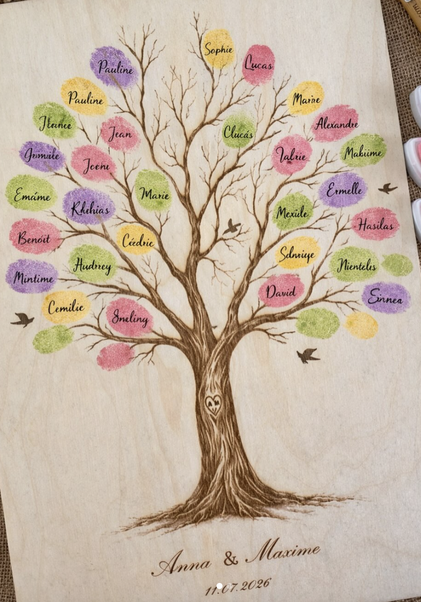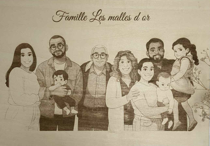 Nous gravons vos moments précieux sur du bois de bouleau, avec une finition élégante sublimée par des touches d’or 22 carats.
